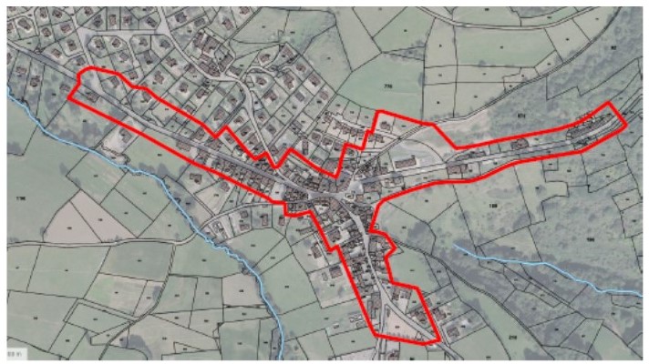 Le centre village s’est construit par étapes successives autour de la chapelle primitive. La plupart des bâtiments ont été construits à la fin du XIX ème siècle. Le front bâti est constitué d’une succession de maisons de bourg classiques faisant le lien entre d’anciennes fermes. Au début du XXème siècle, plusieurs constructions plus originales sont venu s’ajouter. Il s’agit notamment de la villa Marrel, de l’ancienne cure, du manoir de la Patinoire, de la maison blanche et de la Mairie, remaniée à la même époque. Cette période est caractérisée par la mode de l’architecture balnéaire ou thermale.